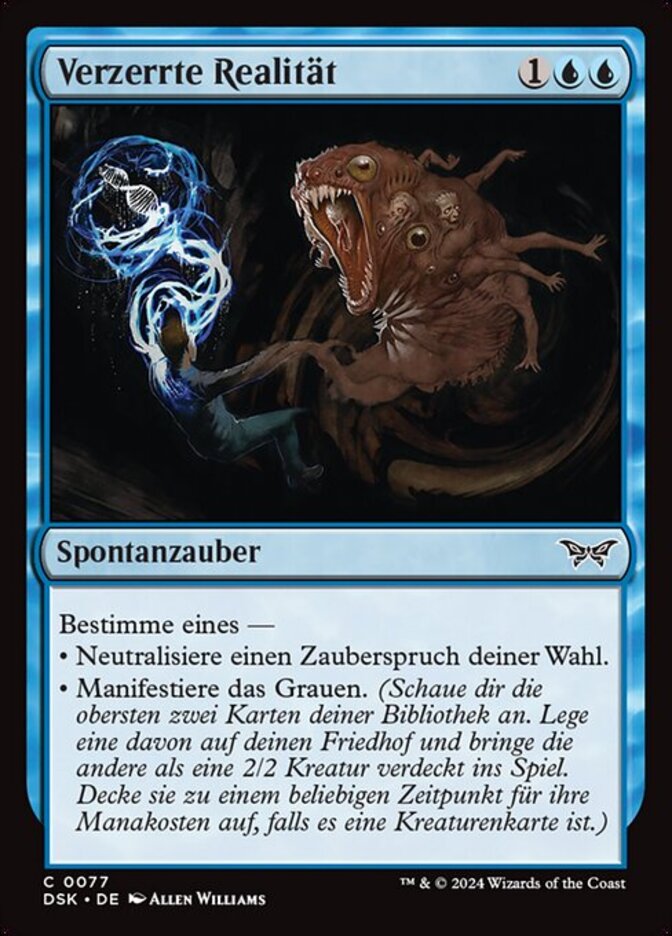 | Rules | Choose one — • Counter target spell. • Manifest dread. (Look at the top two cards of your library. Put one onto the battlefield face down as a 2/2 creature and the other into your graveyard. Turn it face up any time for its mana cost if it's a creature card.) |