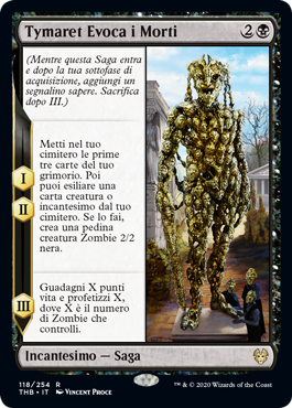 | Rules | (As this Saga enters and after your draw step, add a lore counter. Sacrifice after III.) I, II — Mill three cards. Then you may exile a creature or enchantment card from your graveyard. If you do, create a 2/2 black Zombie creature token. III — You gain X life and scry X, where X is the number of Zombies you control. |