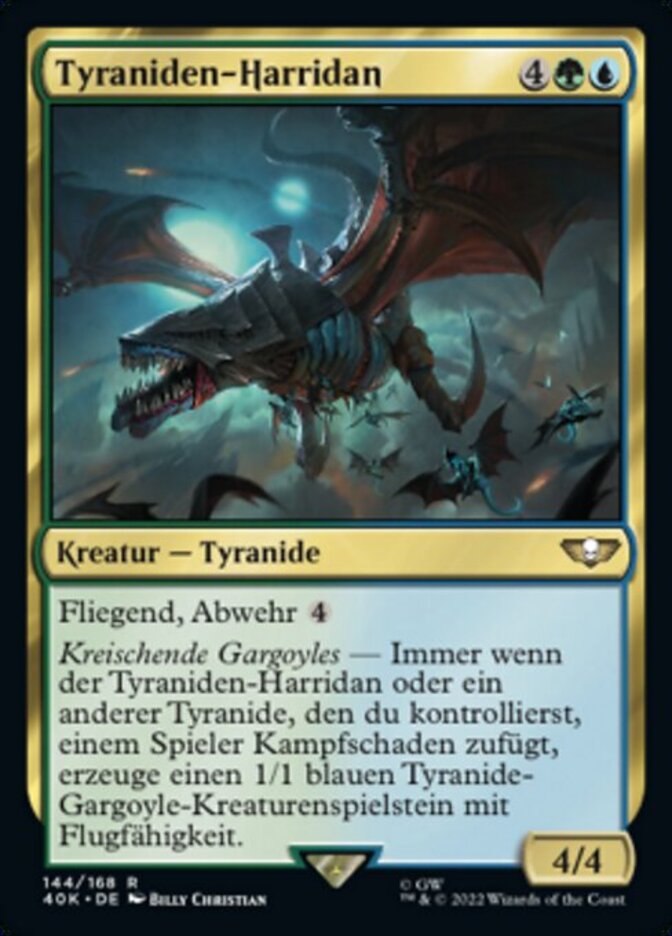 | Rules | Flying, ward Shrieking Gargoyles — Whenever Tyranid Harridan or another Tyranid you control deals combat damage to a player, create a 1/1 blue Tyranid Gargoyle creature token with flying. |