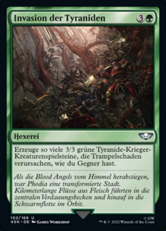 | Rules | Create a number of 3/3 green Tyranid Warrior creature tokens with trample equal to the number of opponents you have. |