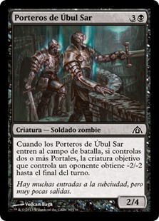 | Rules | When Ubul Sar Gatekeepers enters the battlefield, if you control two or more Gates, target creature an opponent controls gets -2/-2 until end of turn. |
