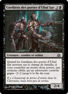 | Rules | When Ubul Sar Gatekeepers enters the battlefield, if you control two or more Gates, target creature an opponent controls gets -2/-2 until end of turn. |
