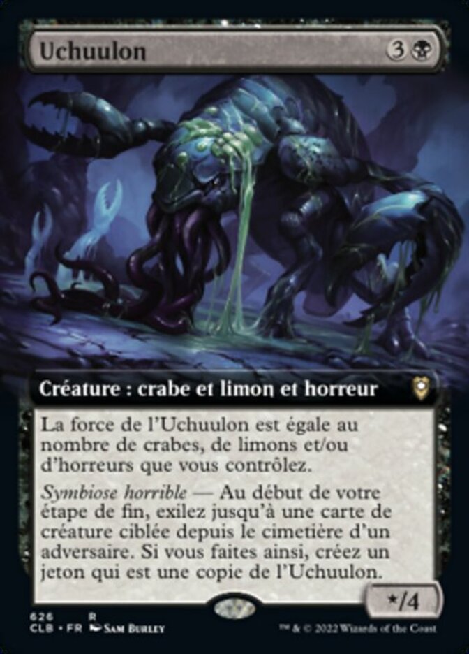 | Rules | Uchuulon's power is equal to the number of Crabs, Oozes, and/or Horrors you control. Horrific Symbiosis — At the beginning of your end step, exile up to one target creature card from an opponent's graveyard. If you, create a token that's a copy of Uchuulon. |