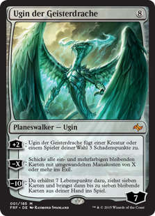 | Rules | +2: Ugin, the Spirit Dragon deals 3 damage to any target. −X: Exile each permanent with mana value X or less that's one or more colors. −10: You gain 7 life, draw seven cards, then put up to seven permanent cards from your hand onto the battlefield. |