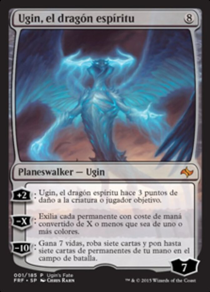 | Rules | +2: Ugin, the Spirit Dragon deals 3 damage to any target. −X: Exile each permanent with mana value X or less that's one or more colors. −10: You gain 7 life, draw seven cards, then put up to seven permanent cards from your hand onto the battlefield. |