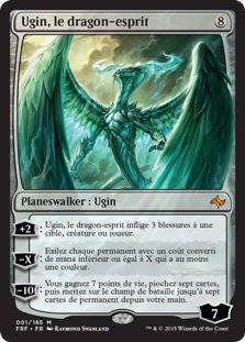 | Rules | +2: Ugin, the Spirit Dragon deals 3 damage to any target. −X: Exile each permanent with mana value X or less that's one or more colors. −10: You gain 7 life, draw seven cards, then put up to seven permanent cards from your hand onto the battlefield. |