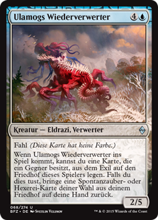 | Rules | Devoid (This card has no color.) When Ulamog's Reclaimer enters the battlefield, you may put a card an opponent owns from exile into that player's graveyard. If you do, return target instant or sorcery card from your graveyard to your hand. |