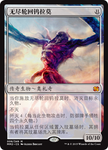 | Rules | When you cast this spell, destroy target permanent. Indestructible Annihilator 4 (Whenever this creature attacks, defending player sacrifices four permanents.) When Ulamog, the Infinite Gyre is put into a graveyard from anywhere, its owner shuffles their graveyard into their library. |