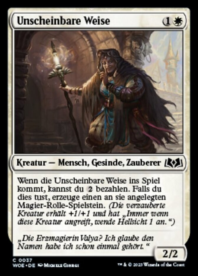 | Rules | When Unassuming Sage enters the battlefield, you may pay . If you do, create a Sorcerer Role token attached to it. (Enchanted creature gets +1/+1 and has "Whenever this creature attacks, scry 1.") |