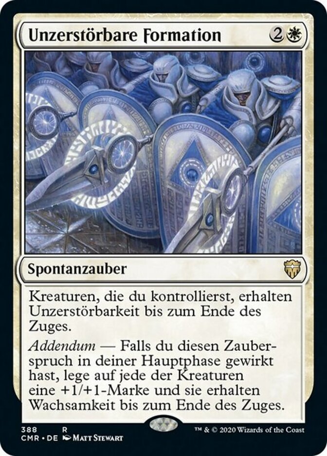 | Rules | Creatures you control gain indestructible until end of turn. Addendum — If you cast this spell during your main phase, put a +1/+1 counter on each of those creatures and they gain vigilance until end of turn. |