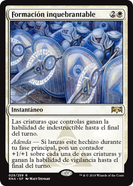 | Rules | Creatures you control gain indestructible until end of turn. Addendum — If you cast this spell during your main phase, put a +1/+1 counter on each of those creatures and they gain vigilance until end of turn. |