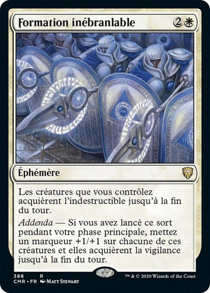 | Rules | Creatures you control gain indestructible until end of turn. Addendum — If you cast this spell during your main phase, put a +1/+1 counter on each of those creatures and they gain vigilance until end of turn. |