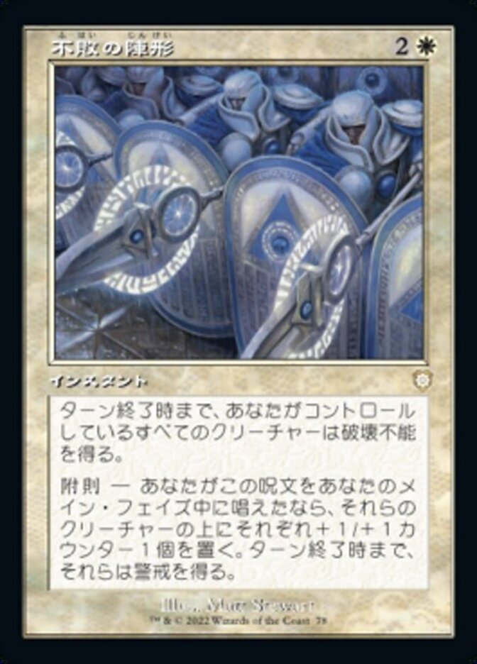 | Rules | Creatures you control gain indestructible until end of turn. Addendum — If you cast this spell during your main phase, put a +1/+1 counter on each of those creatures and they gain vigilance until end of turn. |