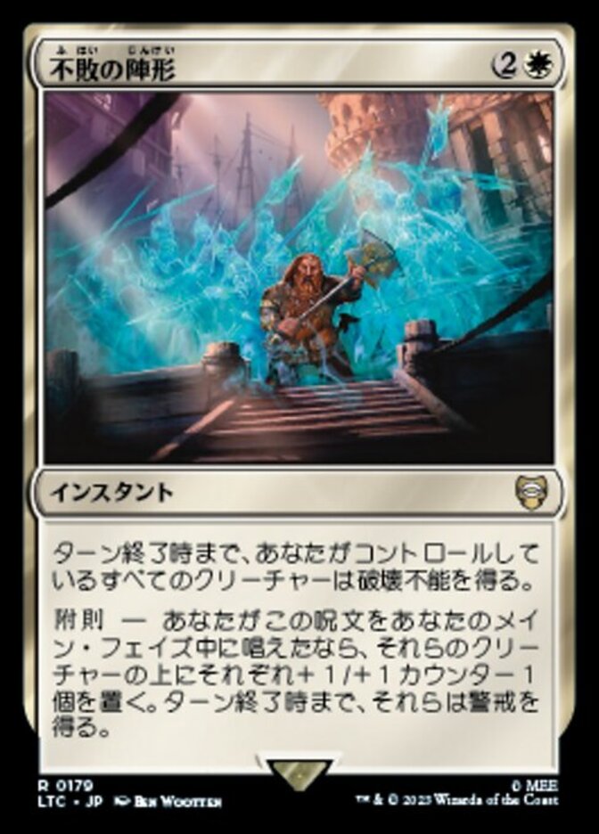 | Rules | Creatures you control gain indestructible until end of turn. Addendum — If you cast this spell during your main phase, put a +1/+1 counter on each of those creatures and they gain vigilance until end of turn. |