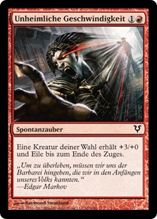 | Rules | Target creature gets +3/+0 and gains haste until end of turn. |