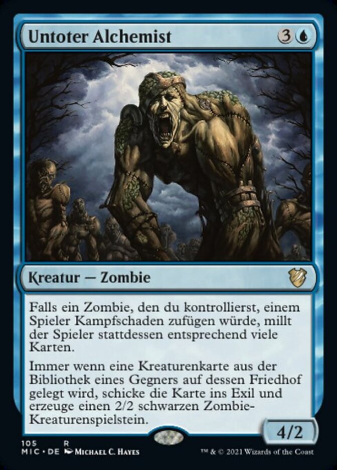 | Rules | If a Zombie you control would deal combat damage to a player, instead that player mills that many cards. Whenever a creature card is put into an opponent's graveyard from their library, exile that card and create a 2/2 black Zombie creature token. |
