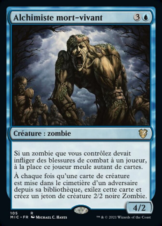 | Rules | If a Zombie you control would deal combat damage to a player, instead that player mills that many cards. Whenever a creature card is put into an opponent's graveyard from their library, exile that card and create a 2/2 black Zombie creature token. |