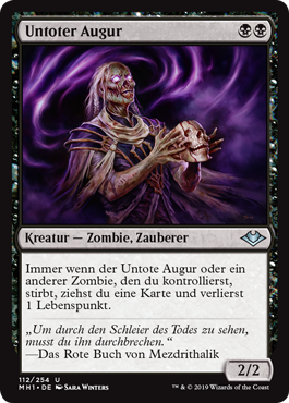 | Rules | Whenever Undead Augur or another Zombie you control dies, you draw a card and you lose 1 life. |