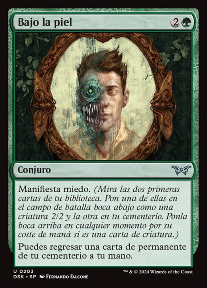 | Rules | Manifest dread. (Look at the top two cards of your library. Put one onto the battlefield face down as a 2/2 creature and the other into your graveyard. Turn it face up any time for its mana cost if it's a creature card.) You may return a permanent card from your graveyard to your hand. |