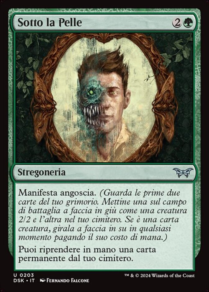 | Rules | Manifest dread. (Look at the top two cards of your library. Put one onto the battlefield face down as a 2/2 creature and the other into your graveyard. Turn it face up any time for its mana cost if it's a creature card.) You may return a permanent card from your graveyard to your hand. |