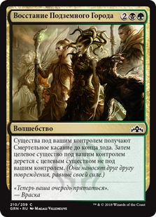 | Rules | Creatures you control gain deathtouch until end of turn. Then target creature you control fights target creature you don't control. (Each deals damage equal to its power to the other.) |