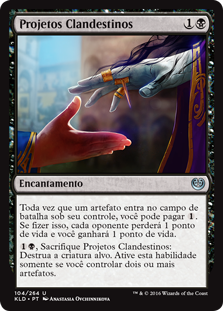 | Rules | Whenever an artifact enters the battlefield under your control, you may pay . If you do, each opponent loses 1 life and you gain 1 life. , Sacrifice Underhanded Designs: Destroy target creature. Activate only if you control two or more artifacts. |