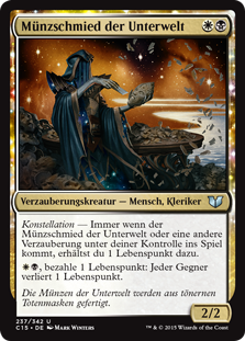 | Rules | Constellation — Whenever Underworld Coinsmith or another enchantment enters the battlefield under your control, you gain 1 life. , Pay 1 life: Each opponent loses 1 life. |