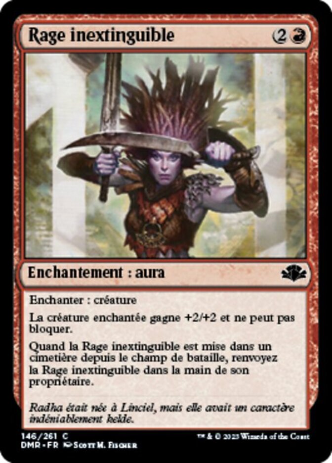 | Rules | Enchant creature Enchanted creature gets +2/+2 and can't block. When Undying Rage is put into a graveyard from the battlefield, return Undying Rage to its owner's hand. |