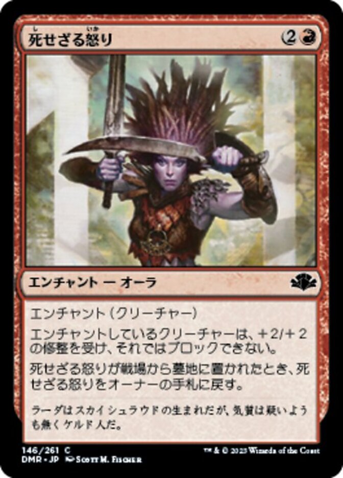 | Rules | Enchant creature Enchanted creature gets +2/+2 and can't block. When Undying Rage is put into a graveyard from the battlefield, return Undying Rage to its owner's hand. |