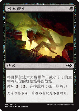 | Rules | Return target creature card with mana value 3 or less from your graveyard to the battlefield. Cycling (, Discard this card: Draw a card.) |