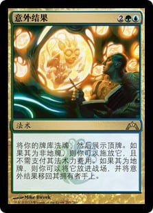 | Rules | Shuffle your library, then reveal the top card. If it's a nonland card, you may cast it without paying its mana cost. If it's a land card, you may put it onto the battlefield and return Unexpected Results to its owner's hand. |