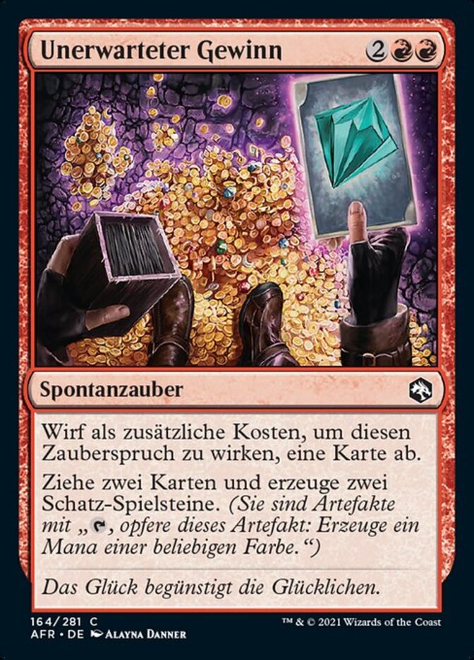 | Rules | As an additional cost to cast this spell, discard a card. Draw two cards and create two Treasure tokens. (They're artifacts with ", Sacrifice this artifact: Add one mana of any color.") |