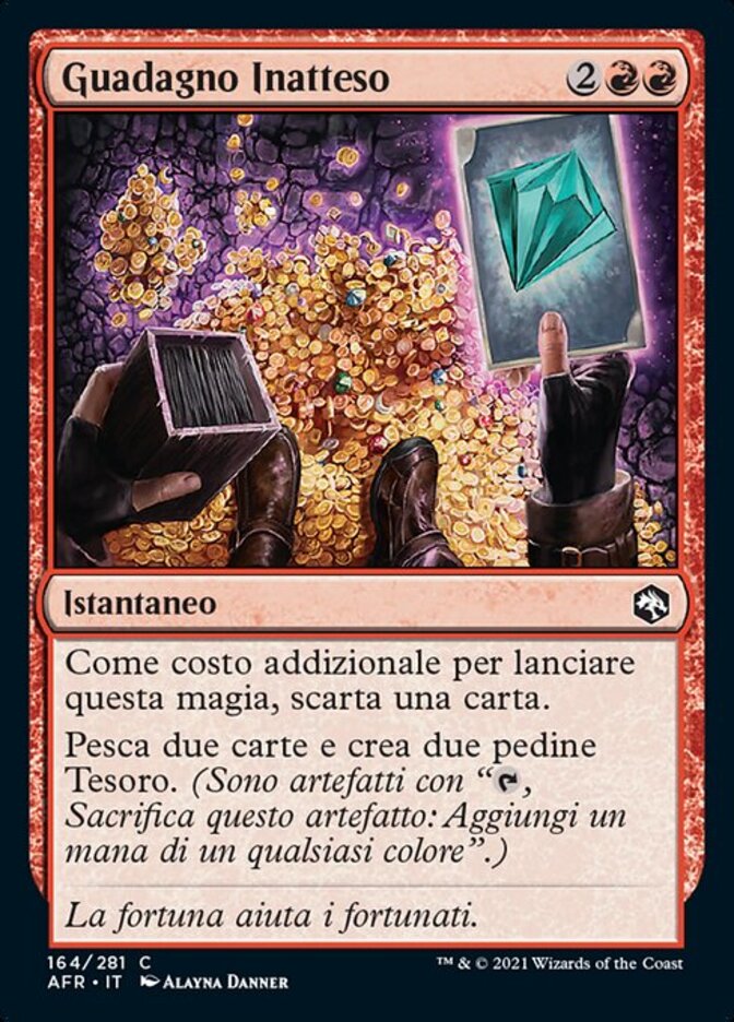 | Rules | As an additional cost to cast this spell, discard a card. Draw two cards and create two Treasure tokens. (They're artifacts with ", Sacrifice this artifact: Add one mana of any color.") |