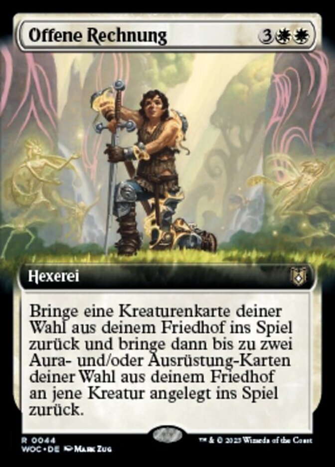 | Rules | Return target creature card from your graveyard to the battlefield, then return up to two target Aura and/or Equipment cards from your graveyard to the battlefield attached to that creature. (If the Auras can't enchant that creature, they remain in your graveyard.) |