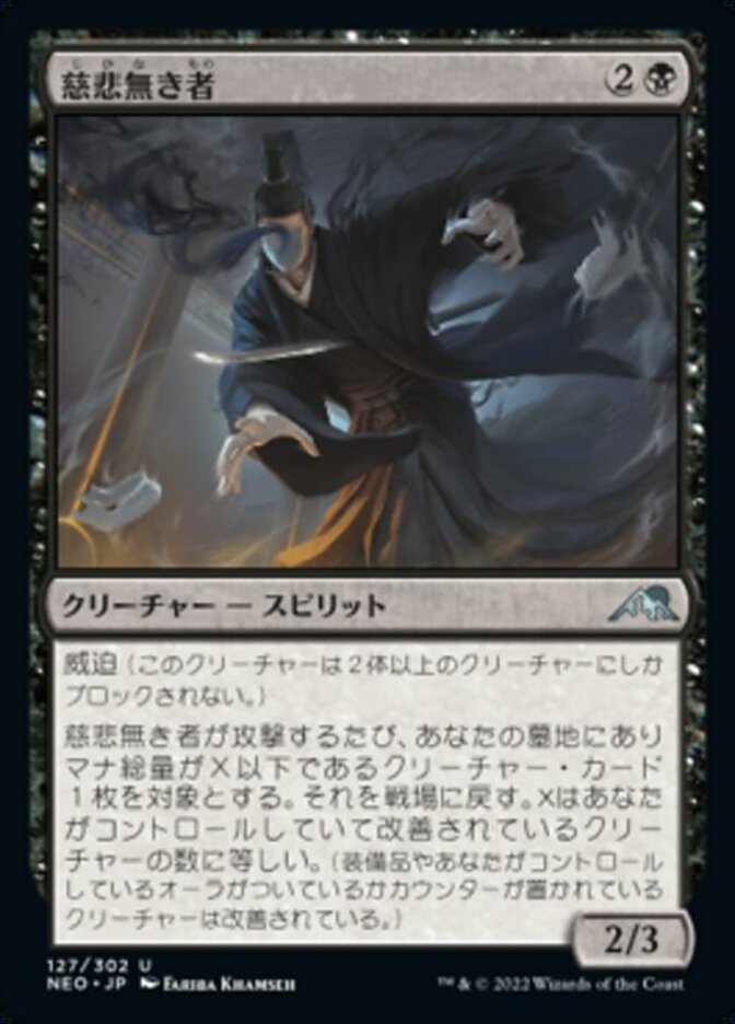 | Rules | Menace (This creature can't be blocked except by two or more creatures.) Whenever Unforgiving One attacks, return target creature card with mana value X or less from your graveyard to the battlefield, where X is the number of modified creatures you control. (Equipment, Auras you control, and counters are modifications.) |