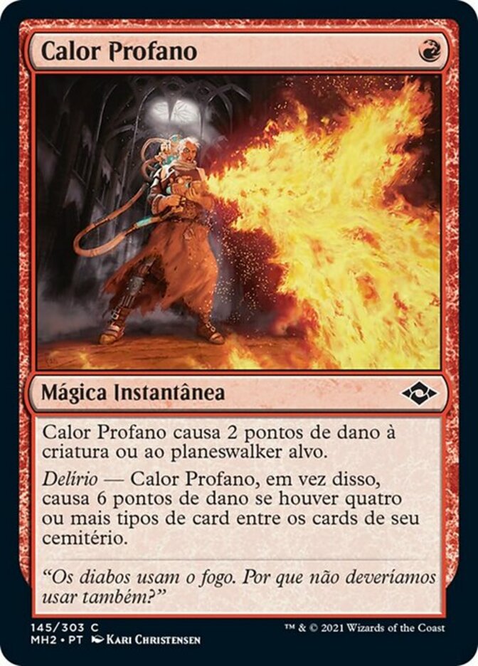 | Rules | Unholy Heat deals 2 damage to target creature or planeswalker. Delirium — Unholy Heat deals 6 damage instead if there are four or more card types among cards in your graveyard. |