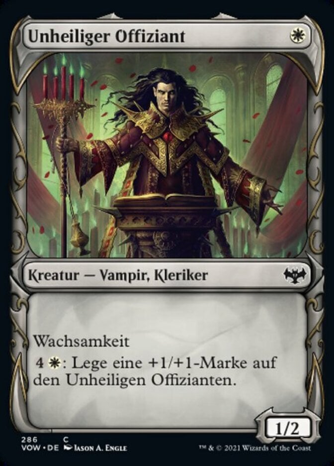 | Rules | Vigilance : Put a +1/+1 counter on Unholy Officiant. |
