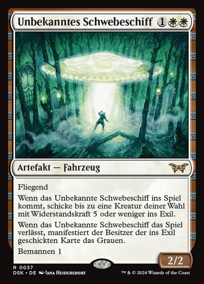 | Rules | Flying When Unidentified Hovership enters, exile up to one target creature with toughness 5 or less. When Unidentified Hovership leaves the battlefield, the exiled card's owner manifests dread. Crew 1 |