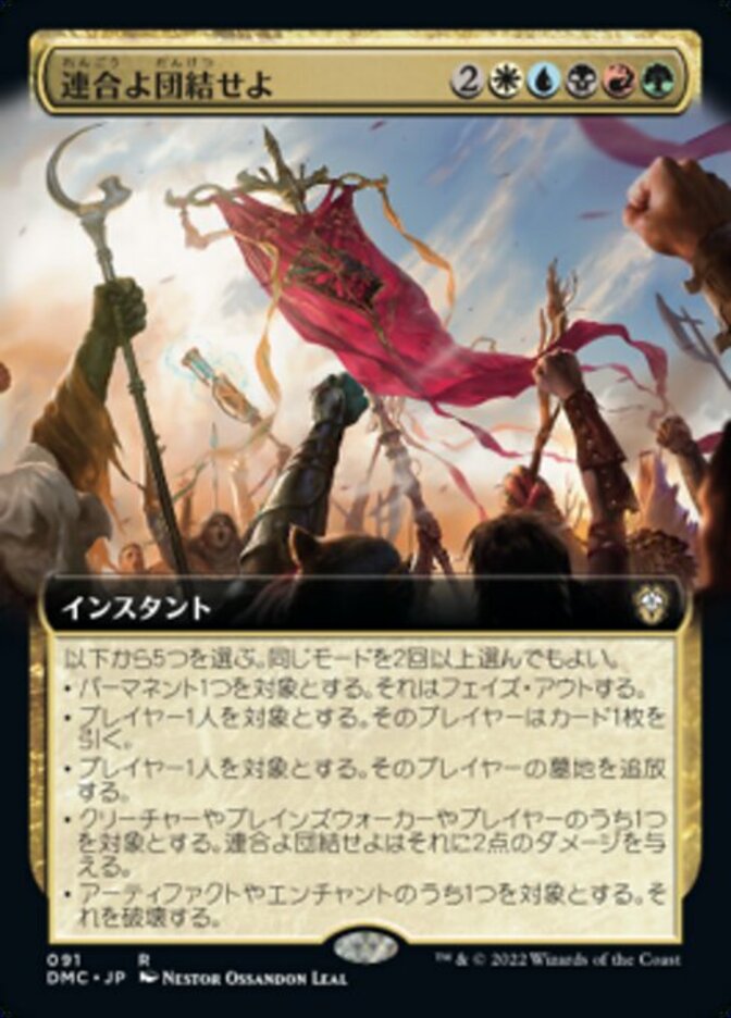 | Rules | Choose five. You may choose the same mode more than once. • Target permanent phases out. • Target player draws a card. • Exile target player's graveyard. • Unite the Coalition deals 2 damage to any target. • Destroy target artifact or enchantment. |