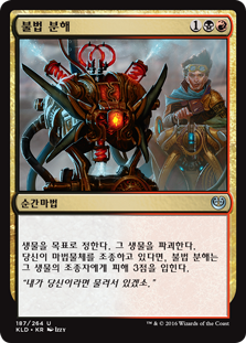 | Rules | Destroy target creature. If you control an artifact, Unlicensed Disintegration deals 3 damage to that creature's controller. |