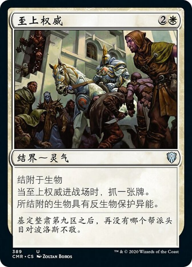 | Rules | Enchant creature When Unquestioned Authority enters the battlefield, draw a card. Enchanted creature has protection from creatures. |