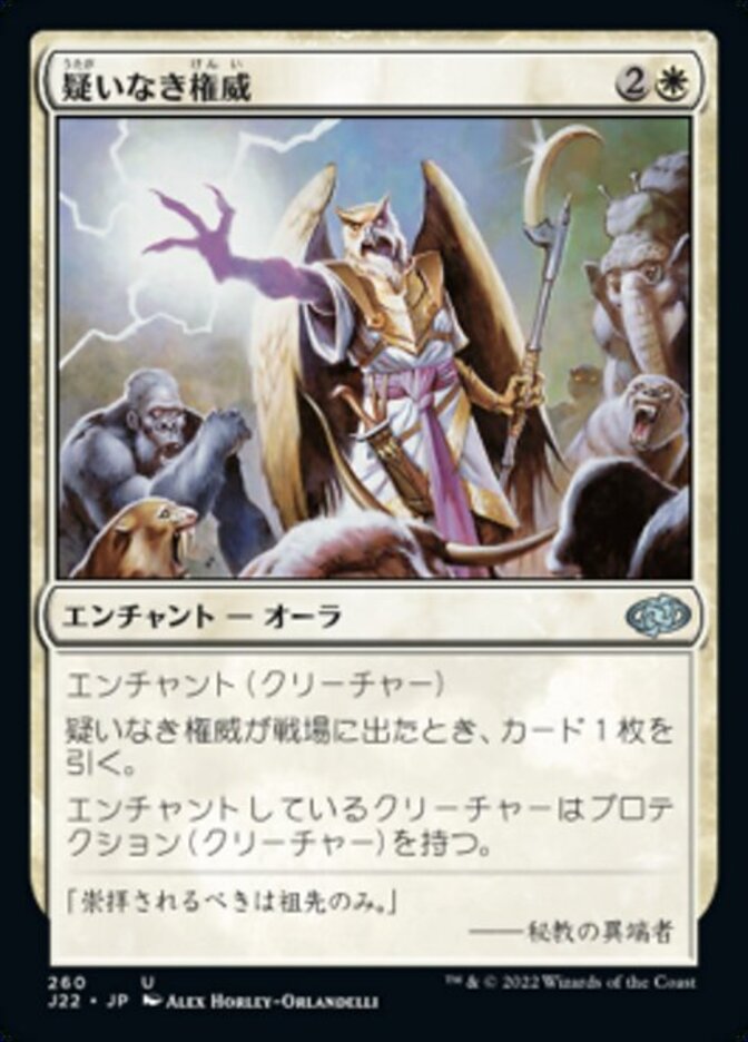 | Rules | Enchant creature When Unquestioned Authority enters the battlefield, draw a card. Enchanted creature has protection from creatures. |