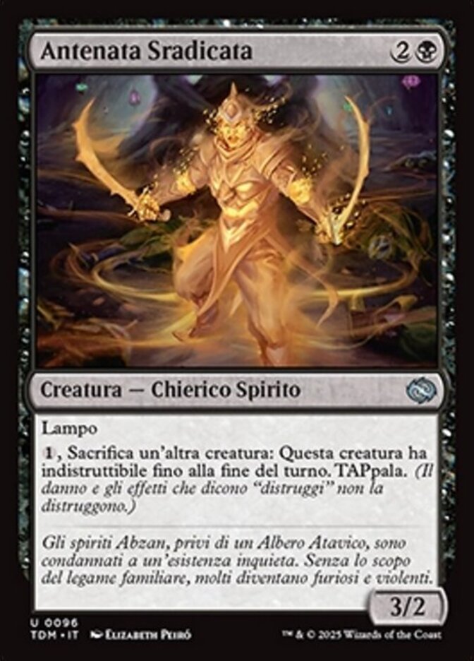 | Flavor | Abzan spirits bereft of a Kin-Tree are condemned to a restless existence. Absent the purpose of family connection, many grow angry and violent. |