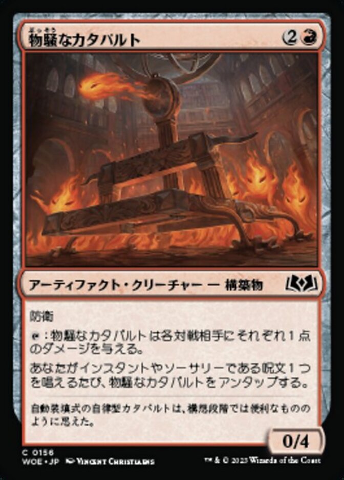 | Rules | Defender : Unruly Catapult deals 1 damage to each opponent. Whenever you cast an instant or sorcery spell, untap Unruly Catapult. |