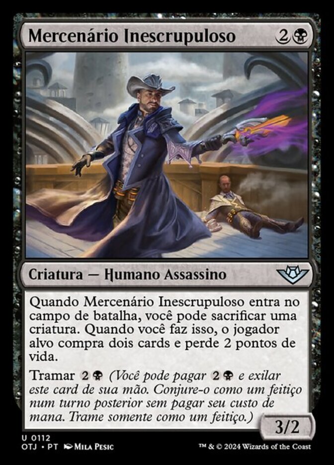 | Rules | When Unscrupulous Contractor enters the battlefield, you may sacrifice a creature. When you do, target player draws two cards and loses 2 life. Plot (You may pay and exile this card from your hand. Cast it as a sorcery on a later turn without paying its mana cost. Plot only as a sorcery.) |