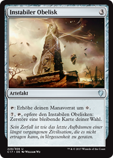 | Rules | : Add . , , Sacrifice Unstable Obelisk: Destroy target permanent. |