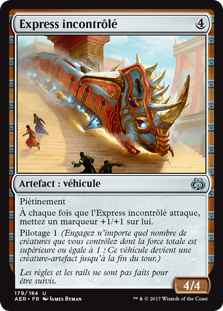 | Rules | Trample Whenever Untethered Express attacks, put a +1/+1 counter on it. Crew 1 (Tap any number of creatures you control with total power 1 or more: This Vehicle becomes an artifact creature until end of turn.) |