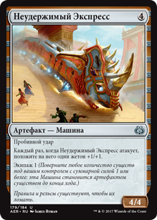 | Rules | Trample Whenever Untethered Express attacks, put a +1/+1 counter on it. Crew 1 (Tap any number of creatures you control with total power 1 or more: This Vehicle becomes an artifact creature until end of turn.) |