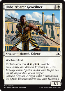 | Rules | Vigilance Embalm (, Exile this card from your graveyard: Create a token that's a copy of it, except it's a white Zombie Human Warrior with no mana cost. Embalm only as a sorcery.) |