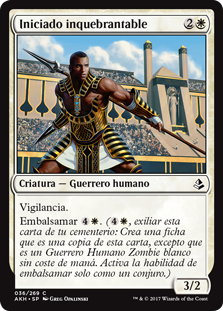 | Rules | Vigilance Embalm (, Exile this card from your graveyard: Create a token that's a copy of it, except it's a white Zombie Human Warrior with no mana cost. Embalm only as a sorcery.) |